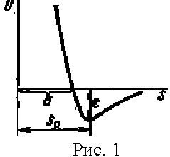 То, что плотности жидкостей и кристаллов имеют вполне конечную величину, указывает на одновременное существование отталкивания между молекулами; не будь отталкивания, молекулы при сближении сливались бы в одно целое и плотность возрастала бы практически не ограниченно. В конденсированном состоянии (жидкости или кристалле), построенном из молекул, притяжение сближает частицы до расстояния, на котором силы притяжения и отталкивания равны по величине. Потенциальная кривая взаимодействия двух молекул приведена на рис.1; от потенциальной кривой двухатомной молекулы она отличается лишь количественно: глубина потенциальной ямы, т.е. энергия взаимодействия, значительно меньше, а равновесное расстояние s0