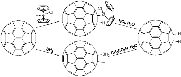Фуллерены зачастую сравнивают с ароматическими углеводородами, что не совсем верно, так как наиболее типичные для бензола реакции замещения невозможны для фуллеренов, не имеющих атомов водорода. На этом основании можно выделить три основных типа реакций:
