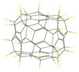 - 40.3 кДж/моль. Это говорит о том, что они менее стабильны, чем графит (0 кДж/моль) и алмаз (1.67 кДж/моль), причем с увеличением размеров сферы (то есть по мере увеличения числа атомов углерода) энтальпия образования асимптотически стремится к энтальпии графита, так как сфера все более напоминает плоскость.