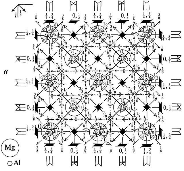 до кубов. Положения атомов Al подчиняются задаваемым атомами Mg клиноплоскостям d. Таким образом, пространственной группой, описывающей