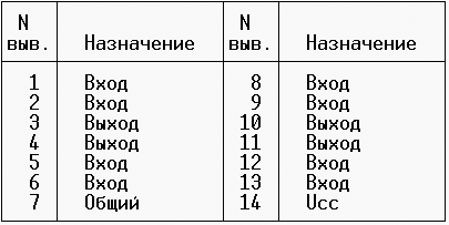 Краткое описание используемых микросхем (УГО, таблица истинности, назначение контактов)
