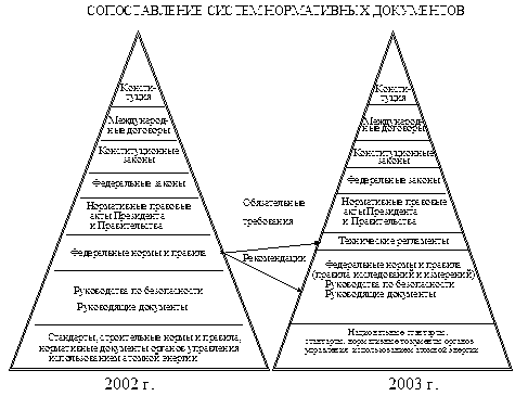Вступление в силу [1] совпало по времени с началом административной реформы [2], на мой взгляд, не случайно. Обе реформы проводятся с весьма похожими по декларациям благими намерениями, с использованием международного опыта и рекомендаций и, в общем, одними и теми же структурами исполнительной власти. Попытка ряда ведущих ученых [3] исключить область использования атомной энергии из сферы действия [1] не удалась, хотя в ее основе лежали вполне здравые соображения, что в этой наукоемкой передовой области уже сформирована система технического регулирования, которая соответствует отечественному законодательству, международным конвенциям и подкреплена опытом эксплуатации и научно-техническими достижениями. Именно это позволило в [4] предложить систему нормативного регулирования ядерной и радиационной безопасности (ЯРБ) в качестве образца или первого приближения для создаваемой системы технического регулирования.