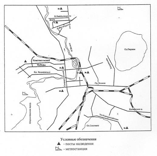 Рис. 4 Схема расположения постов наблюдения