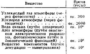 Продолжительность того пли иного цикла можно условно оценить по тому времени, которое было бы необходимо, чтобы вся масса данного вещества могла обернуться один раз на Земле в том или ином процессе (см. табл. 4.1).