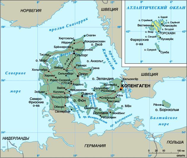 Дания - государство в Северной Европе, на полуострове Юкатан и островах Датского архипелага. Географические координаты