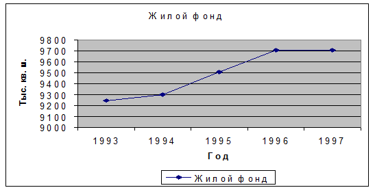 1. Строительство жилищного фонда ведётся очень медленными темпами. В последний год площадь жилого фонда не изменилась в сравнении с предыдущим. Поскольку потребность в новых квартирах постоянно возрастает, требуется увеличивать объём жилья. Учитывая, что наверняка не были удовлетворены предыдущие потребности в новых квартирах, а теперь появились и новые, нужно немедленное введение в эксплуатацию большого количества площадей. К сожалению, взять их пока что неоткуда, и в ближайшее время при таких темпах строительства не предвидится появление нового жилищного фонда. Единственный выход – увеличить объёмы и скорость строительства, но без ущерба качеству, чтобы в будущем можно было удовлетворить растущую потребность в жилье. Есть и положительный фактор (в свете нехватки жилого фонда) – это снижение численности населения. В 1997 году численность населения региона снизилась на 0,9 тысяч человек. Естественно, это печальное обстоятельство.
