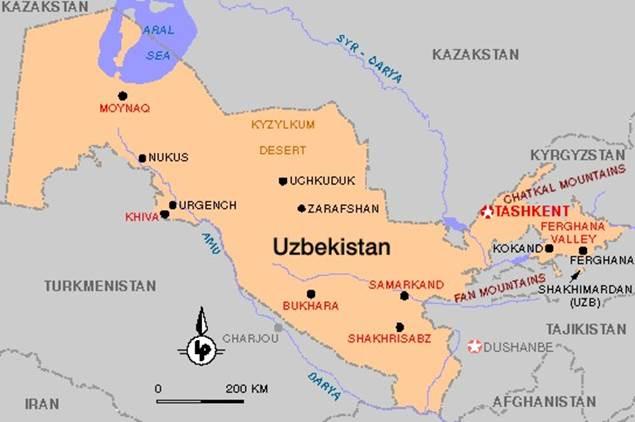 В состав Узбекистана входят 12 областей (Андижанская, Наманганская, Ферганская, Ташкентская, Самаркандская, Бухарская, Кашкадарьинская Сурхандарьинская, Сырдарьинская Джизакская, Хорезмская, Навоийская и Каракалпакская республика).