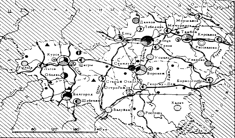Территориальная организация хозяйства Центрально-Черноземного района характеризуется большими диспропорциями. Высок удельный вес в промышленном производстве областных центров. Воронеж, Липецк и Курск дают более 60 % промышленной продукции своих областей, Белгород и Тамбов соответственно 30 и 35 %. Низок потенциал средних и малых городов. Имеются и значительные различия между областями, что выражается прежде всего в гипертрофированной роли Воронежской области в промышленном производстве региона. Правда, в последнее время за счет интенсивного развития ТПК КМА в Белгородской и Курской области, металлоемкого машиностроения в Липецкой области, машиностроения и химической промышленности в Тамбовской области эти диспропорции сглаживаются.