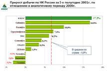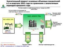 Девиз Компании в 2001 году - обновление и рост производства по всем направлениям деятельности. Предусмотрено значительное, до 14 процентов, наращивание объемов добычи нефти, запланировано существенное улучшение структуры выпускаемых нефтепродуктов, оптимизация мощностей сбытовых предприятий.