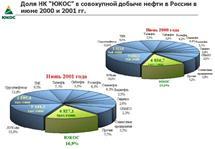 НК ЮКОС сегодня добывает 15,3 % всей российской нефти, прочно занимая 2-е место среди отечественных компаний.