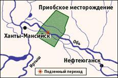 Справка: Приобское месторождение открыто в 1982 году. Оно занимает площадь 5446 кв. км и находится в центральной части Западной Сибири, примерно в 65 км к востоку от Ханты-Мансийска и 100 км к западу от Нефтеюганска.