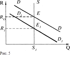 Предложение земли S абсолютно неэластично и не участвует в определении ренты. При снижении спроса на землю с D1 до D2 величина земельной ренты падает с R1 до R2. При этом можно видеть, как при падении спроса до D3 земельная рента вообще исчезает. Этот результат нам будет особенно интересен при изучении ситуации, сложившейся в ходе аграрной реформы В России, когда падение спроса на отечественное продовольствие привело к массовому обесцениванию земли как ресурса.