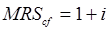 то есть альтернативная стоимость текущего потребления, выраженная в единицах будущего потребления, равняется индивидуальной оценке его относительной полезности. Это соотношение имеет экономическую интерпретацию. Например, если MRScf
