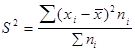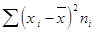 делят полученную сумму на сумму весов и получают средний квадрат признака ;