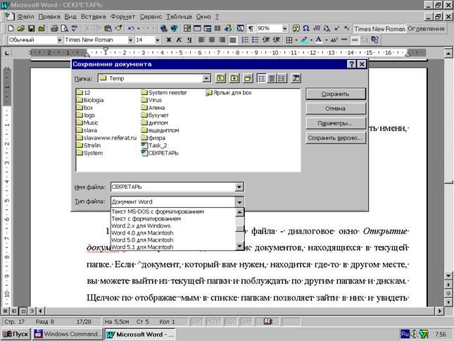 даст вам список всех файлов. Список возможных типов в этом окне зависит от установленных на компьютере средств преобразования текстовых и графических файлов, которые вы выбрали при установке Word.