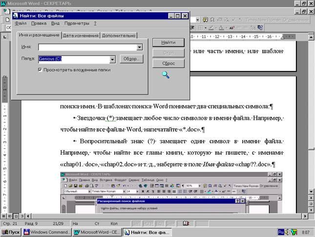 dot”, вы найдете все шаблоны документов Word, “*'.txt” позволяет найти все текстовые файлы, а “*.*”