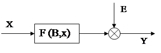 F (B,x) – параметрическая функция, которая осуществляет преобразование значений Х в Y, или это модель изучаемого объекта.