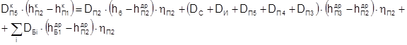 Баланс всех полученных расходов проверяем на основе уравнения материального баланса конденсатора. Расход рабочего тела после конденсатора запишем в следующем виде: