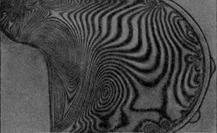 В монохроматическом свете обе системы полос черные и отчетливо видны изохромы высокого порядка. В экспериментах были получены полосы 70-го порядка, т. е., учитывая размеры моделей, до 5 полос на 1 мм.