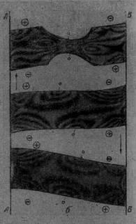 во всех трех пластинах возникает напряженное состояние. Просвечивание этих моделей в поляризованном свете показало, что на свободном контуре образуются как сжатые так и растянутые участки (рис. 3, б)