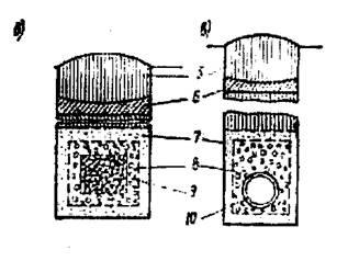 Каптажные водосборные сооружения устраивают двух типов: для каптажа восходящих родников водоприемные сооружения представляют собой шахты или резервуары, размещаемые над местом наиболее интенсивного выхода подземных вод (рис. 6а); для каптажа нисходящих родников сооружают приемные камеры, располагаемые в месте интенсивного выхода родниковой воды (рис. 6б). В стенке камеры, обращенной к фронту поступления подземных вод, предусматривают водоприемные окна.
