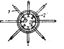 Лучевой водосбор является сооружением инфильтрационного типа, используемым для забора подрусловых и подземных вод из водоносных пластов небольшой мощности, лежащих на глубине до 20 м. Вода отбирается перфорированными трубчатыми дренами, расположенными в пределах водоносных пород и присоединяемыми радиально к сборному шахтному колодцу (рис. 5).