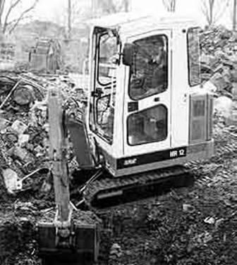 Специалисты фирмы "Karl Schaeff & Co" (ФРГ) разработали три модели мини-экскаваторов: HR12, HR14 и HR16. HR12 имеет следующие особенности: небольшая с высокой степенью остекления кабина оператора установлена на достаточно мощной раме, подвижно соединенной с гусеничной ходовой частью машины; гусеничное шасси состоит из двух резинометаллических гусениц с развитыми грунтозацепами, причем гусеницы традиционно приводятся в движение ведущими звездочками, соосно соединенными с гидравлическими моторами; на раме с тыльной стороны кабины установлен дизельный двигатель, упрятанный за аккуратными панелями облицовки и укрытый капотом аллигаторного типа. Здесь же заливная горловина топливного бака и выхлопная труба; к раме, кроме кабины и силового агрегата, крепится опора поворотного устройства двухсекционной стрелы, на конце которой монтируется сменный рабочий орган; к гусеничной ходовой части крепится нож (отвал), способный перемещаться в вертикальном направлении, что и предопределяет бульдозерные возможности машины.