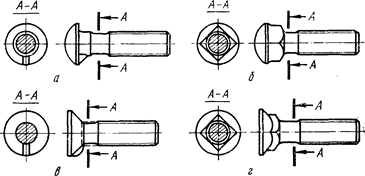 с потайной головкой и усом (рис. 2,в); с потайной головкой и квадратным подголовком (рис. 2,г); шинные (с потайной головкой) D=1,7—1,8 d,