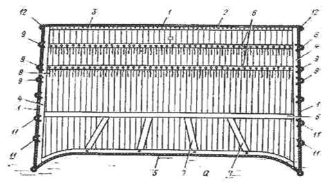 ота; 8 - внутренняя обшивка; 9 - бимсы; 10 - лац-порты.