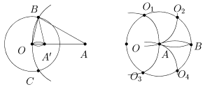 На рис. 2 построение образа выполнено только с помощью циркуля (в предположении, что |OA| > R/2). Для этого достаточно провести окружность