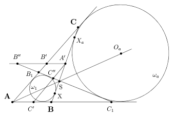 касается оставшихся двух вневписанных окружностей. Теорема доказана.