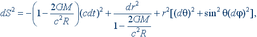 где M – гравитационная масса; G – гравитационная постоянная; R – радиус гравитационной массы; dr, dθ, dφ – приращения пространства в полярных координат.