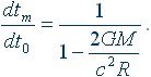 =0, и рассмотреть его в радиальном направлении, т.е. опустить члены, содержащие θ и φ и решить его относительно dt, то получим: