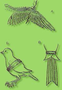 Открытый перелом всегда является большой проблемой, и прогноз при лечении их должен быть осторожным. Вначале необходимо тщательно очистить рану, удалить осколки костей или инородный предмет, например дробь. Прежде чем соединить кости, они должны быть тщательно зачищены, рану покрывают лейкопластырной и пропускающей воздух повязкой (рис. 16). В противоположность млекопитающим у птиц редко встречаются сложные переломы. Если при переломах поражены мускулы, связки и нервы, то накладывать шины бесполезно. В таких случаях лучше ампутировать пораженный участок крыла, так как через некоторое время происходит его отмирание. Небольшие птички быстро излечиваются после потери части крыльев. Они могут еще длительное время содержаться при определенных условиях. Хищные птицы, напротив, в большей части случаев переносят такие операции с трудом, и их лучше усыплять. Описан случай, когда у фламинго, который жил в неволе, ампутировали ногу, заменили протезом, посла этого он жил около 2 лет. На здоровой конечности у него развилось воспаление подошвы. Ампутация крыла выполнима только для птицы, содержащейся в клетке.