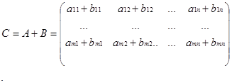 Таким образом, чтобы сложить матрицы А и В, надо сложить их элементы, стоящие на одинаковых местах. Например,