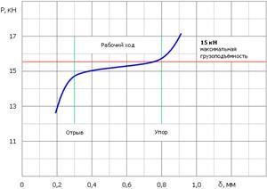 =15,5кН (1,55 тонны), а величина зазора, при котором грузоподъемность постоянна – lhor