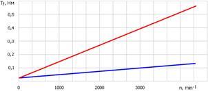 Конструкция испытывалась на частоту вращения до 4500об/мин; на рис.5 представлен график изменения момента потерь на токи Фуко Tf