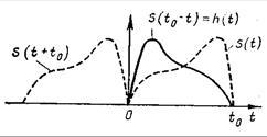 Это условие эквивалентно равенству , означающему, что наибольшее отношение сигнал/помеха в момент времени t0 на выходе фильтра достигается тогда, когда импульсная характеристика фильтра является зеркальным отображением полезного сигнала s(t+t0) (рис. 3.1).