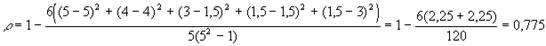 Среднее из суммы рангов равно 75 : 5 = 15. Значение S соответственно будет равно