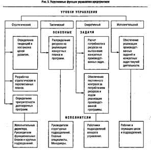 3) полномочия и функции работников организации на различных уровнях управления (низшем, среднем, высшем).