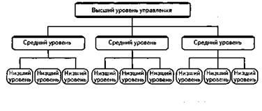 При двухуровневой структуре создаются верхние звенья управления (руководство организацией в целом) и низовые звенья (менеджеры, непосредственно руководящие работой исполнителей). При трех и более уровнях в структуре формируется так называемый средний слой, который в свою очередь может состоять из нескольких уровней.