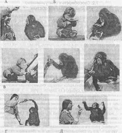Приобретение «социальных знаний». Прямые наблюдения в природе свидетельствуют о важном значении для общественных отношений в группах шимпанзе и горилл способности оценивать знания сородичей и понимать их намерения (Фосси, 1990; Гудолл, 1992; Byrne, 1998; Tomasello, Call, 1998).