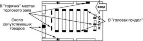 Правая сторона, Боковые полки стеллажей, Перекрестки “троп покупателей”, Выступы в стеллажахМеста, куда поку-патель “упирается взглядом”