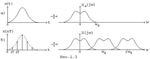 (jw) в (1.3) частично перекрываются, если условие (1.4) не выполняется (Рис 1.3, б). В этом случае спектр дискретного сигнала искажается по отношению к спектру аналогового сигнала. Эти искажения являются неустранимыми и называются ошибками наложения.