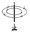 Когда соединительную проволоку Эрстед ставил вертикально, то магнитная стрелка совсем не указывала на нее, а располагалась как бы по диаметру окружности с центром по оси проволоки (рис. 2). Исследователь предложил считать действие проволоки с током ВИХРЕВЫМ, так как именно вихрям свойственно действовать в противоположных направлениях на двух концах одного диаметра.