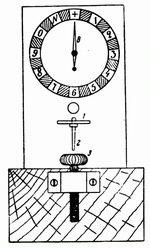 При нажатии пальцем на клавишу одного из приборов (1) металлический стержень (2) опускается в чашеобразную головку железного винта (3), наполненную ртутью. Электрическая цепь замыкается, и в приемном приборе нижний конец рычага (5), подвешенного на оси (6) и отжимаемого пружиной (7), притягивается к сердечнику электромагнита (4). При этом верхний конец рычага (5), действуя на одно из зубчатых колес «специального профиля» (9), повернет его, а вместе с ним и стрелку указателя (8) на 1/24 часть окружности. При освобождении клавиши электрическая цепь разомкнется, возвратная пружина (7) вернет рычаг (5) в исходное положение. В этот момент верхний конец рычага воздействует на второе зубчатое колесо (9), и стрелка указателя повернется еще на 1/24 часть окружности. Следовательно «один импульс» – нажатие и освобождение клавиши (1), возвращаемой в исходное положение пружиной (11), воздействующей на один из приборов, вызывает во втором приборе поворот стрелки указателя на 1/12 часть окружности; при этом стрелка указателя (рис. 2) переходит от одного знака к другому. С помощью специального кода депеша быстро расшифровывается.