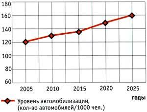 Прогнозируемое изменение уровня автомобилизации в первой четверги населения XXI в.