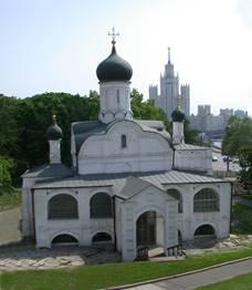 Древнее ядро – храма кубический объем с полукруглой апсидой на сводчатом, несколько заглубленном в землю подклете, перекрытый крестчатым сводом и увенчанный стройным барабаном с полуциркульными кокошниками в основании и изящной аркатурой. Окна первоначально глухого (хотя и открытого внутрь храма) барабана прорублены позднее. Подклет главного храма и его стены до пят свода – белокаменные, верх церкви сложен из маломерного кирпича. Над юго-западным углом возвышалась звонница, по-видимому, такая же, как у церкви Трифона в Напрудном (1492), с которой у Зачатьевского храма много общего.
