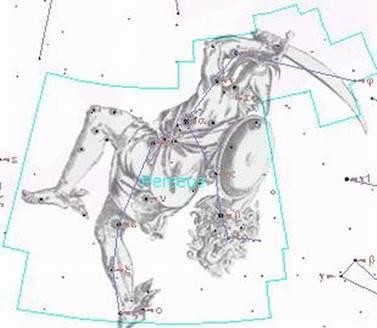 На старинных звездных картах Персей изображен в воинственной позе. В правой руке он держит высоко занесенный меч, а в левой - страшную голову Медузы. Наблюдая небо, арабы в средние века заметили, что один глаз Медузы застыл и неподвижен, а второй... время от времени подмигивает! Пораженные, они назвали мигающий глаз Медузы (он же - звезда бета созвездия Персея) "дьяволом" или по-арабски "Алголом". В Европе на переменность Алголя впервые обратил внимание еще в 1667 г. итальянский астроном и математик Монтанари. Ему, правда, не удалось выяснить закономерности изменения блеска Алголя. Сделал это уже известный нам Джон Гудрайк. С 1782 по 1783 г. он каждую ясную ночь оценивал блеск Алголя, и ему удалось установить строгую периодичность в "подмигивании" глаза Медузы.