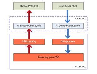 Архитектура круговорота открытых ключей для “нестандартных” алгоритмов в Windows представлена на картинке:
